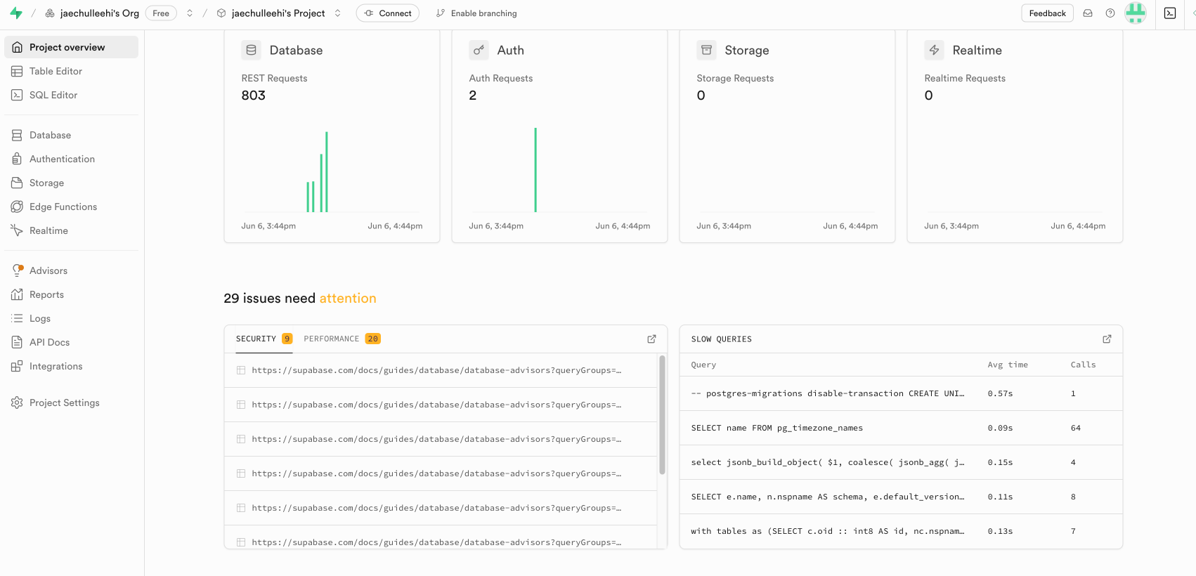 - Supabase: 무료 티어 사용